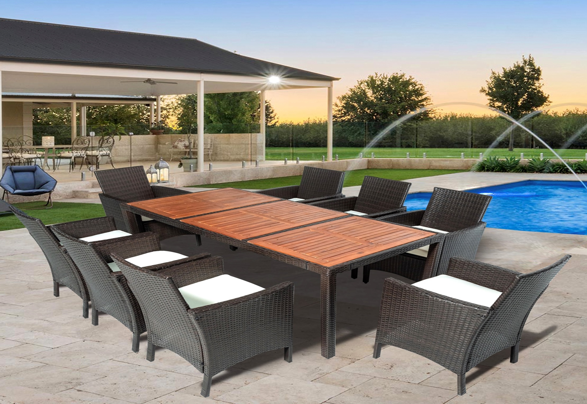 Dining Set 10 seater acacia table top